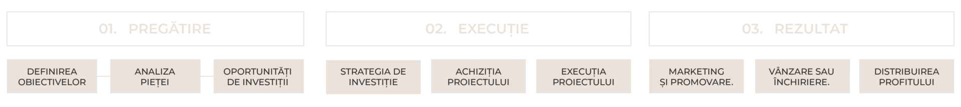 Procesul nostru de investiții este construit pe o fundație de claritate, strategie și rezultate. Fiecare etapă este meticulos concepută pentru a conduce la succes, asigurând că obiectivele sunt atinse cu precizie și rezultatele oferă valoare maximă.