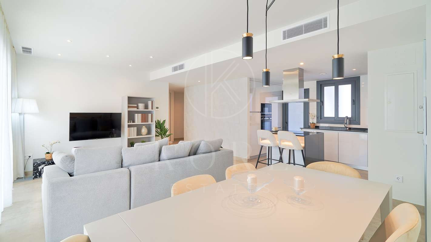 Fiecare apartament este proiectat cu terase spațioase care permit vedere la mare și lumină naturală, creând o atmosferă de deschidere și luminozitate. Unitățile se remarcă prin standardele lor ridicate de calitate, incluzând încălzire în pardoseală și un sistem modern aerotermal care asigură eficiență energetică și confort pe tot parcursul anului. Bucătăriile și băile sunt complet echipate cu mărci de prestigiu, garantând finisaje excepționale în fiecare detaliu.