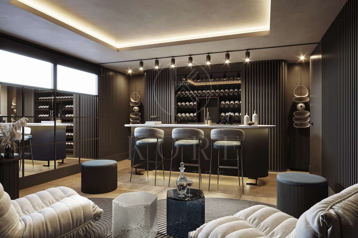 La parter: O cameră de zi-masă spațioasă de peste 40 m², integrată cu o bucătărie spectaculoasă de ultimă generație, complet utilată și echipată. Are, de asemenea, un dormitor dublu, o baie completă și o terasă parțial acoperită minunată cu vedere la grădina privată și la piscina infinită.