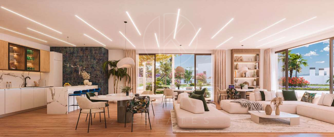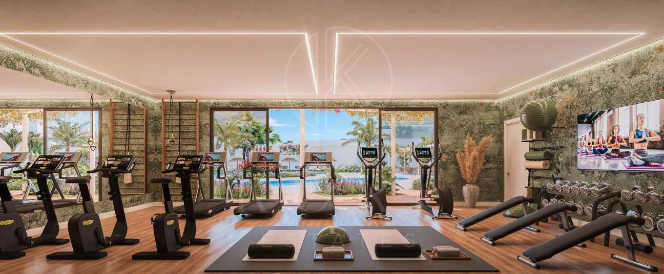 În inima coastei andaluze, acest nou dezvoltare oferă totul, este echilibrul perfect între distracție și liniște, tradiție și modernitate, sofisticare și glamour.Aflat într-un mediu natural deosebit, este cel mai bun punct de acces către plajele din Costa del Sol și peisajele naturale presărate cu sate albe fermecătoare precum Casares sau Gaucin, sau Estepona, care adaugă farmecul tradițional acestei experiențe unice.La câțiva kilometri distanță găsim locuri precum Sotogrande, Marbella și Puerto Banus, centre nevralgice ale sofisticării și sporturilor de elită.Aflat pe linia de front a terenului de golf, aceste 74 de apartamente și 17 penthouse-uri cu 2 și 3 dormitoare și etajul întâi cu grădini oferă o densitate scăzută a construcției care garantează intimitate și liniște.Ariile comune cu spații largi deschise înconjurat de natură și interioare cu un design atent, sunt concepute pentru a profita la maximum de vederea la mare, oferind un mediu unde domnește liniștea perfect pentru îngrijirea de sine și relaxare.Lumina face diferența în toate locuințele, care au terase mari de la 21 m² la 104 m² sau grădini la primul etaj care ajung la 154 m², oferind interiorului luminozitate în toate camerele și cele mai bune vedute la mare sau linia de golf fără a compromite intimitatea.Arhitectura devine un dans armonios între interior și exterior. Fuziunea acestor elemente permite claritatea zilelor mediteraneene luminoase să pătrundă în fiecare colț al casei, creând o atmosferă prietenoasă și relaxantă în orice moment.Din interior, ferestrele mari și spațiile deschise invită lumina naturală să inunde interiorul, în timp ce profunzimea privirilor face ca din confortul casei tale să te poți conecta fără efort cu peisajul instantaneu.Fiecare detaliu a fost luat în considerare cu atenție pentru a maximiza sentimentul de bine, făcând ca fiecare moment să fie o experiență relaxantă.