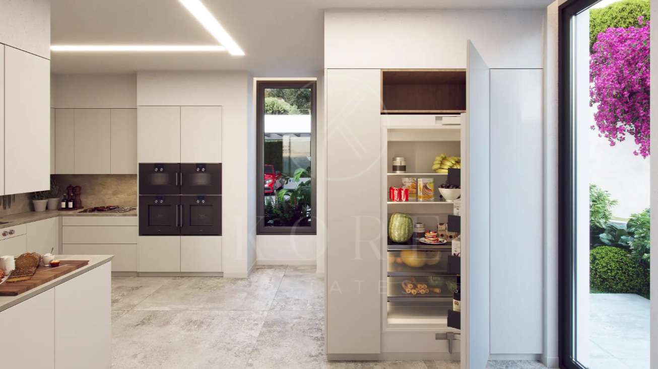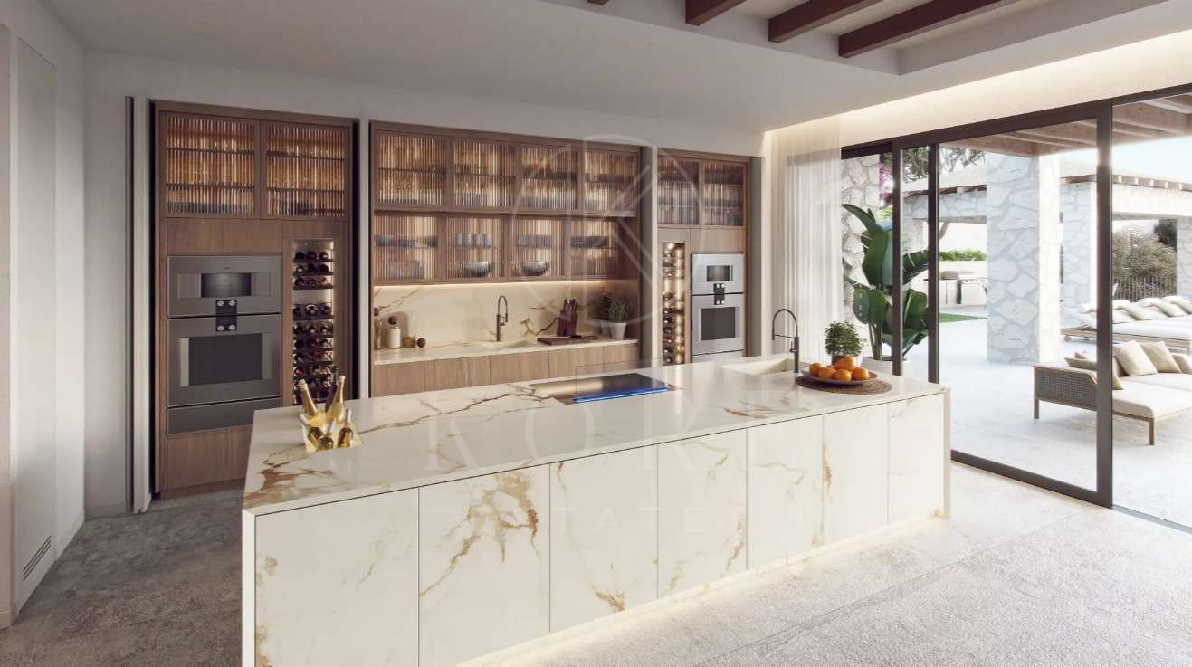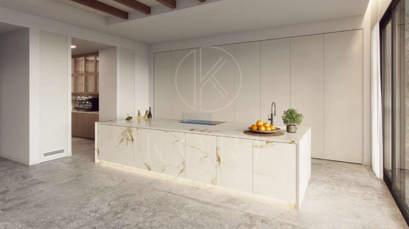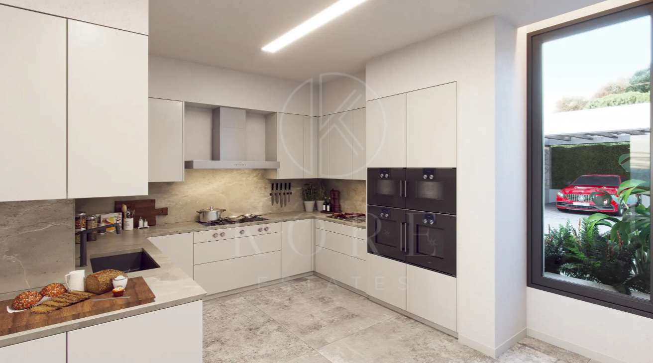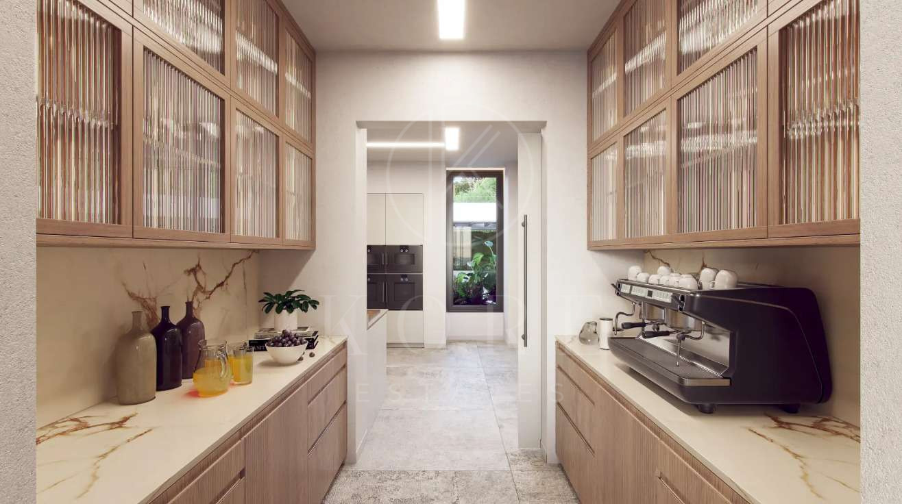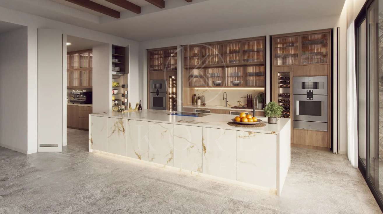 Configurația include 3 etaje cu 8 dormitoare și 8 băi, 2 dintre dormitoare având acces privat. Dispune de o zonă de locuit cu concept deschis și spații exterioare spațioase, incluzând mai multe terase și o pergolă elegantă echipată cu o bucătărie și zonă de luat masa în aer liber.