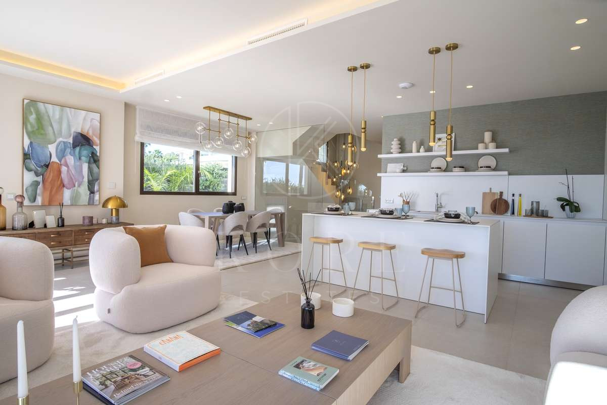 ULTIMA VILĂ DE VÂNZARE!Această vilă nouă este situată într-o locație privilegiată pe Costa del Sol, cu o atmosferă de liniște și relaxare înconjurată de natură.Această locuință se remarcă prin calitatea materialelor sale, exclusivitatea și locația invidiată în fața plajei.Dezvoltare rezidențială exclusivă pe plajă în prima linie pe New Golden Mile, la 10-12 minute de condus de faimosul Puerto Banus.Vilă cu 4 dormitoare plus subsol și 4 băi (2 en suite, 1 la parter și alta în subsol). Are 3 locuri de parcare în parcarea comunitară.Prețul de vânzare este de 4,5 milioane mobilată.Este un complex închis cu securitate 24 de ore, grădini proiectate cu caracteristici de apă și acces direct la plajă. Există o piscină infinită încălzită în aer liber tot timpul anului, piscină pentru copii, jacuzzi încălzit, terasă cu șezlonguri și paturi chill-out supra-dimensionate, toate oferind vederi uimitoare la mare.În apropierea zonei piscinei se află un pavilion pentru grătar, unde se pot pregăti prânzuri în aer liber plăcute.Deoarece sportul este o parte importantă a stilului de viață mediteranean sănătos, există teren de tenis, teren de paddle tennis și sală de gimnastică cardio deschisă cu vedere la mare.Fără a uita de copii, va exista un loc de joacă pentru cei mici în complex.Bine ați venit la viața paradisiacă.