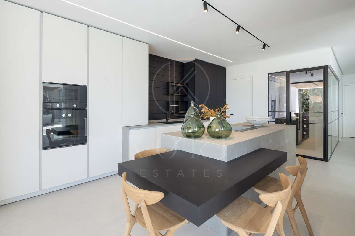 Descoperiți o vilă contemporană extraordinară în comunitatea exclusivistă cu acces controlat Lomas de La Quinta, proiectată de renumitul arhitect Carlos Lamas și cu interioare de La Albaida. Această capodoperă orientată spre sud oferă vederi panoramice impresionante către mare și un design modern impecabil, unde fiecare detaliu a fost meticulos creat pentru lux și confort.