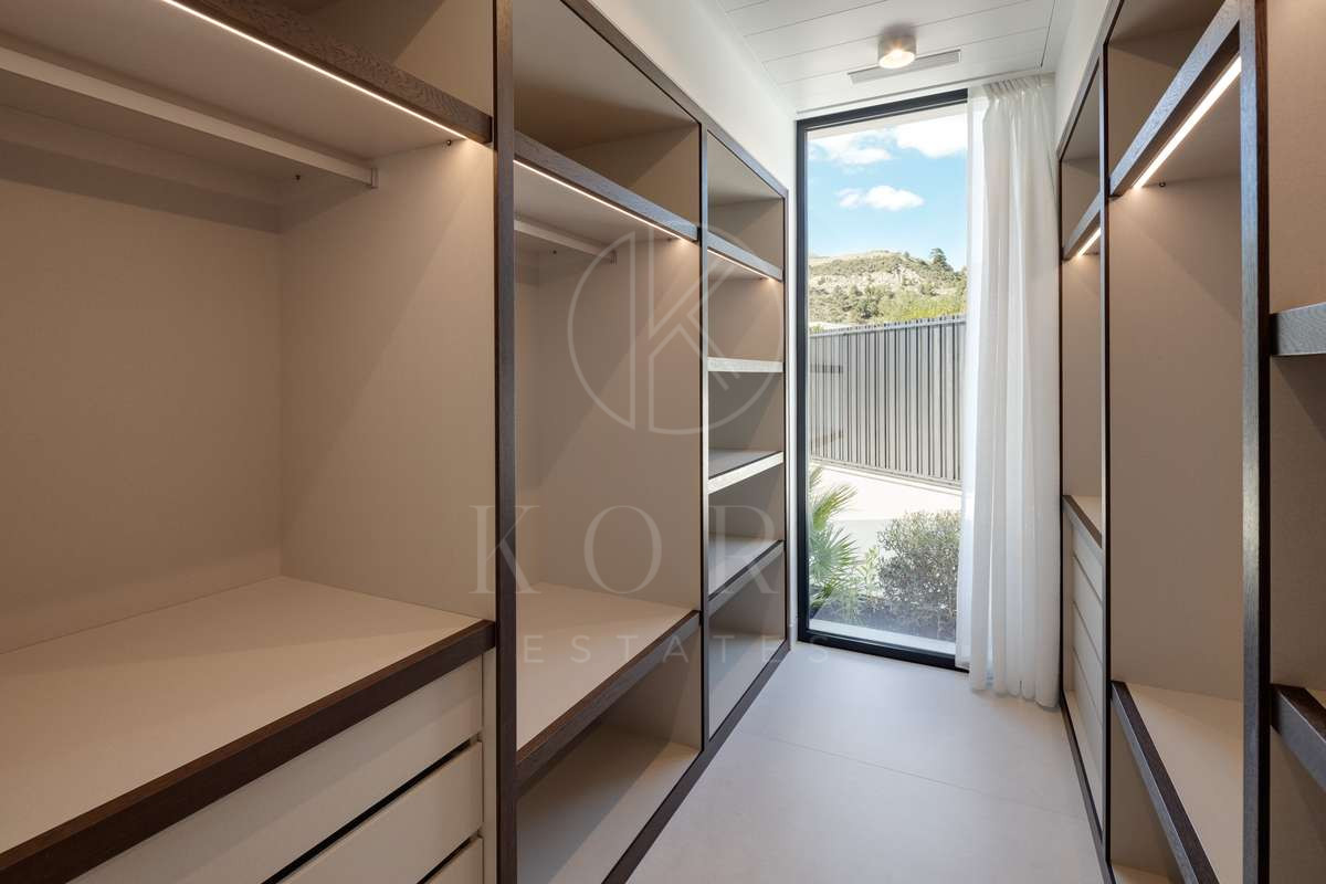 Parterul este dedicat vieții rafinate și divertismentului, oferind un lounge TV, zonă de living formală cu o șemineu supradimensionat și o bucătărie complet echipată Modulnova. O cramă walk-in îmbunătățește experiența de luat masa, în timp ce terasele exterioare extinse se mândresc cu o bucătărie în aer liber, zonă de luat masa și o piscină infinită cu vedere către Mediterană.