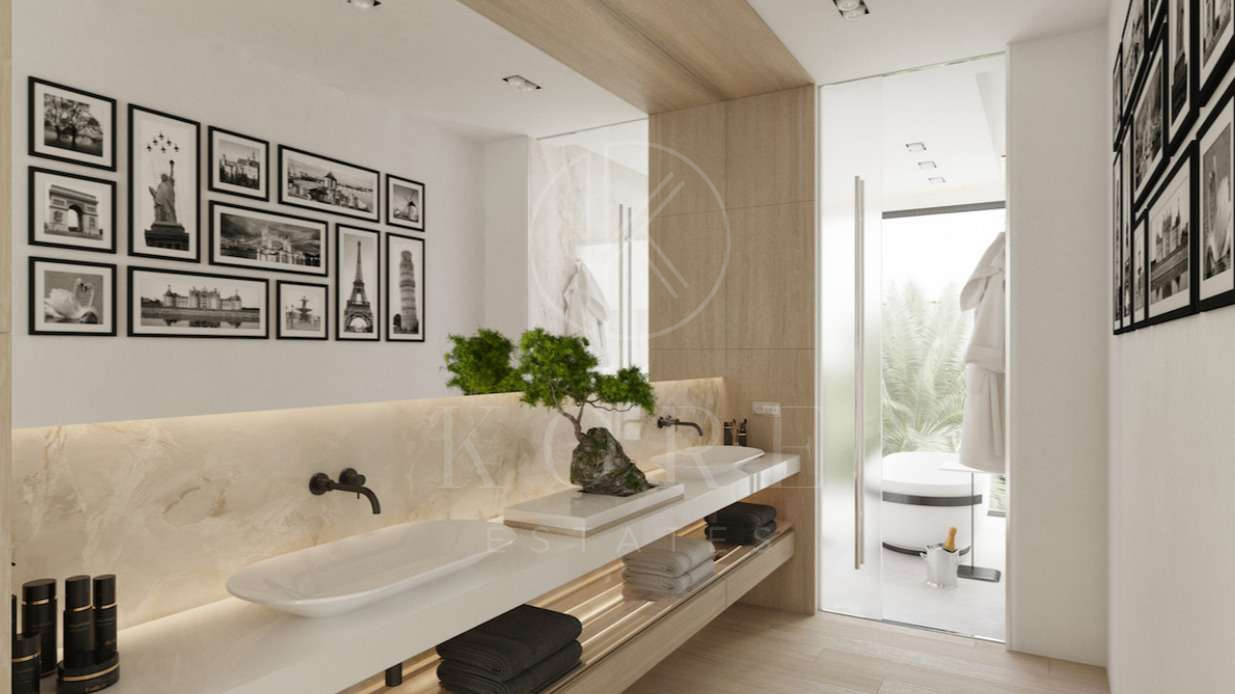 Construită cu cele mai bune materiale de calitate, vila are fațadă cu placaj din blocuri de porțelan de format mare, finisată cu atenție la detalii și caracteristici arhitecturale neobișnuite, echipamente și tehnologie de calitate, podele din marmură și stejar (în dormitoare), încălzire electrică în toate spațiile casei, soluție de iluminare elegantă, jaluzele electrice, soluții inovatoare ale sistemelor de ferestre Schüco, și multe altele care fac aceste vile cu adevărat exclusive.