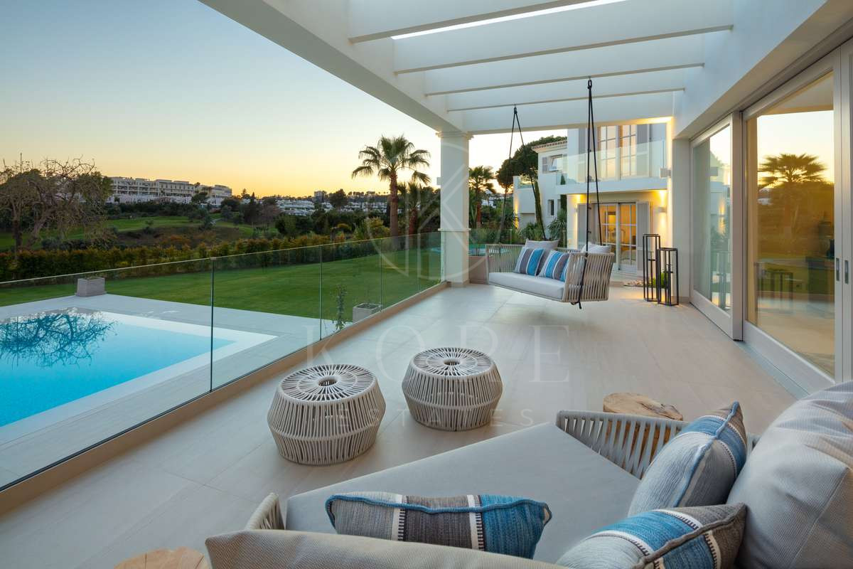 Un oază privată situată în zona luxoasă Aloha din Valea de Golf a Marbella. Această magnifică vilă este amplasată într-o comunitate rezidențială de prestigiu și se bucură de o locație de primă linie invidioasă, cu vedere la terenul de golf Aloha.
