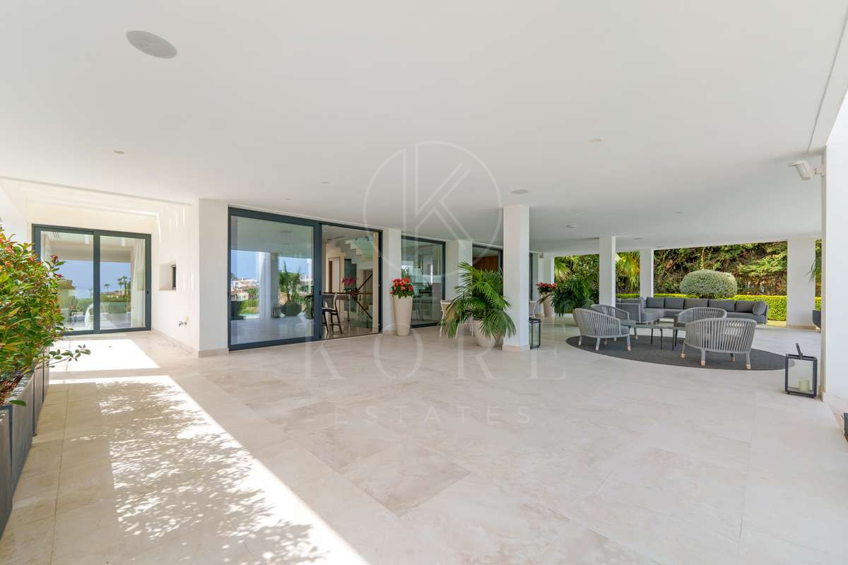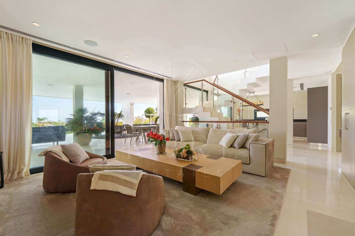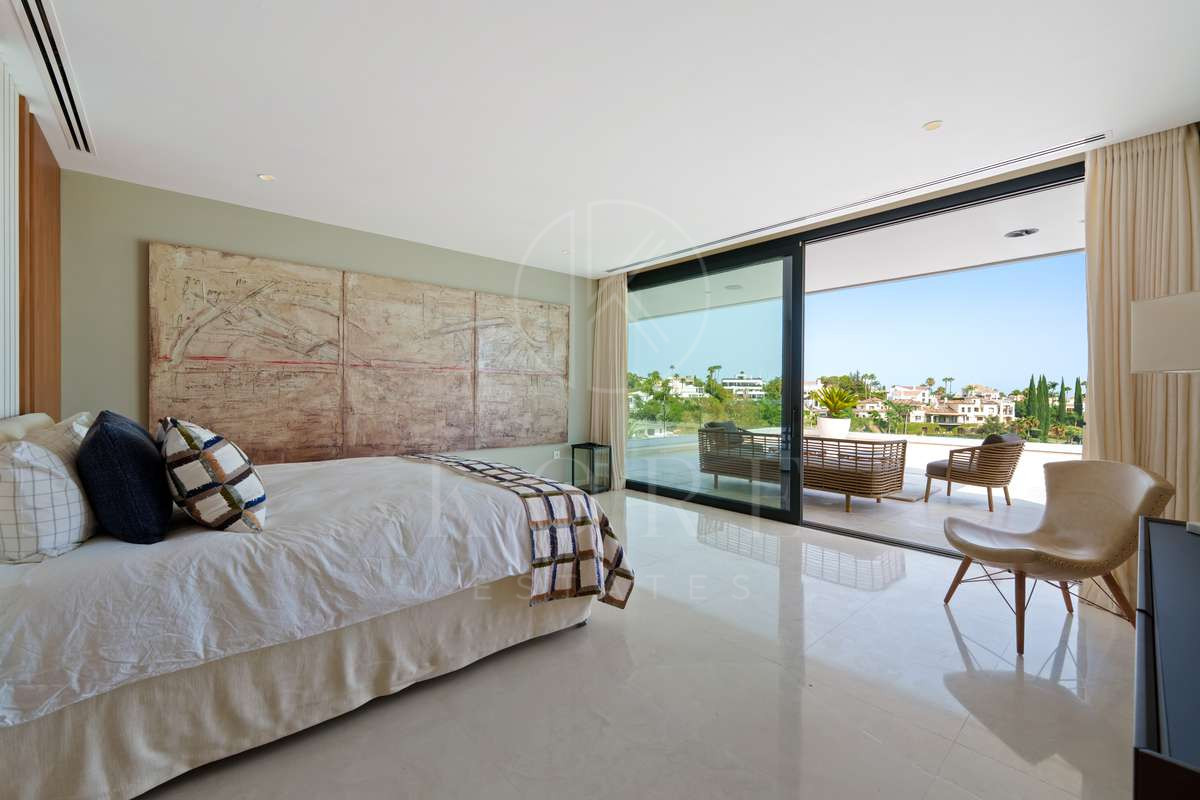 Vă prezentăm această superbă vilă contemporană în inima Nueva Andalucía, cu o locație excelentă pe terenul de golf de primă linie.