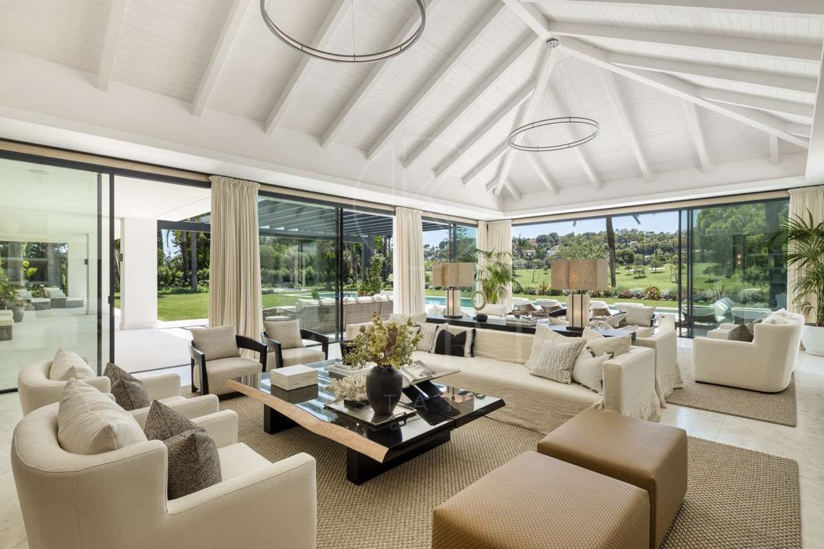 Bine ați venit la această vilă uimitoare situată în prima linie de golf, cu o locație de neegalat în inima Nueva Andalucía, cu vedere la prestigiosul club de golf exclusivist Las Brisas.