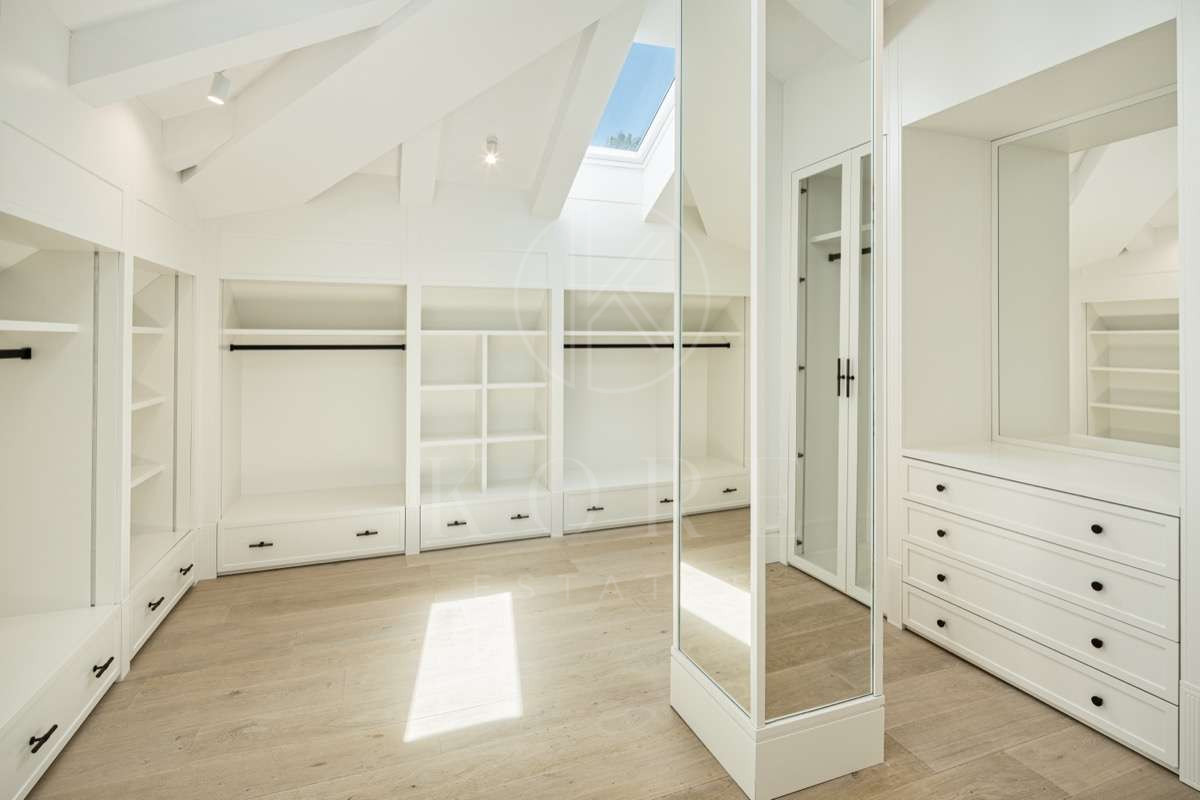 Etajul superior este rezervat exclusiv dormitorului principal, un refugiu incredibil de privat de dimensiuni generoase. Acesta include o cameră de dressing uimitoare, o baie principală luxoasă și acces la o terasă privată cu vedere directă la terenul de golf.