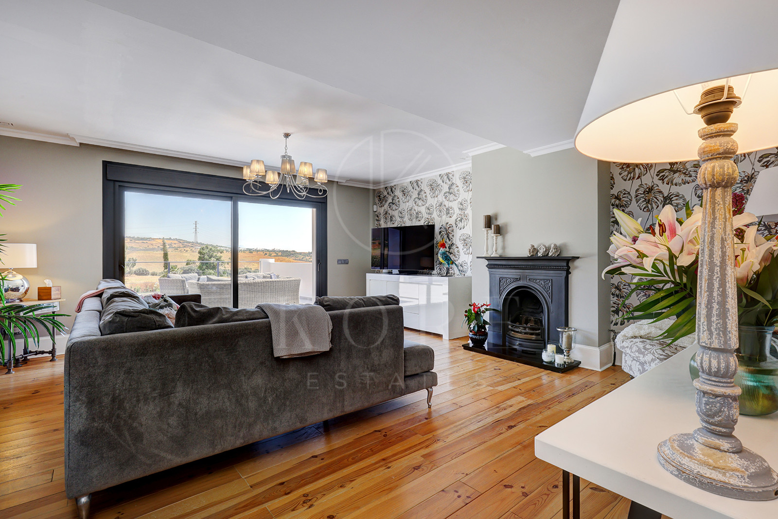 Din bucătărie, ușile rabatabile dezvăluie priveliști încântătoare asupra grădinilor amenajate, a piscinei luxoase și a unei bucătării exterioare complet echipate, cu o zonă înaltă pentru șezut. O zonă inferioară de relaxare și un șemineu exterior creează cadrul perfect pentru mese în aer liber și petreceri estivale. Această zonă exterioară include un WC separat.