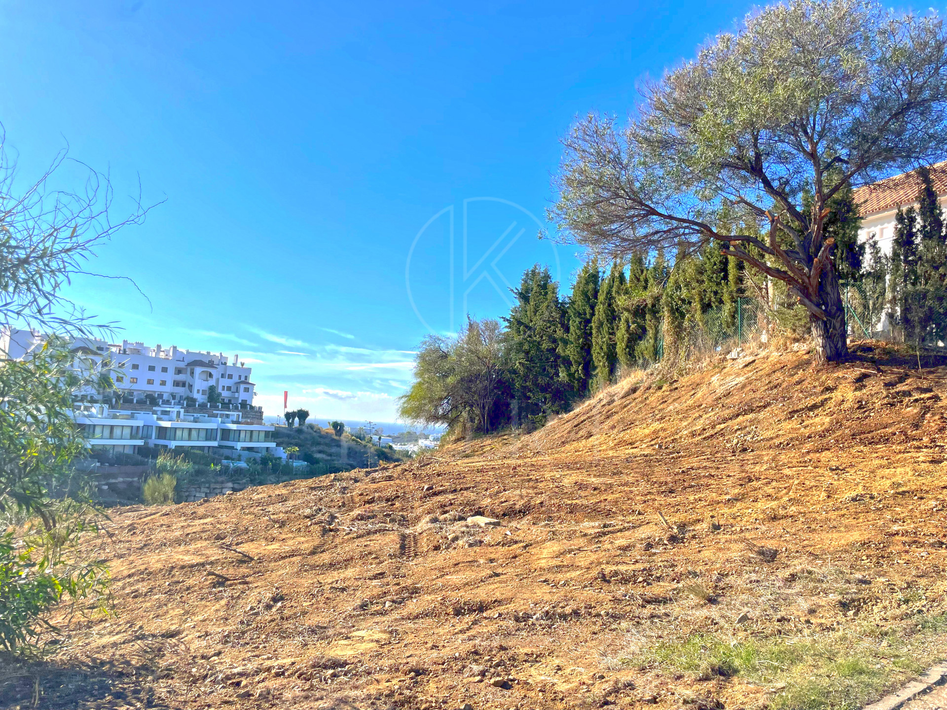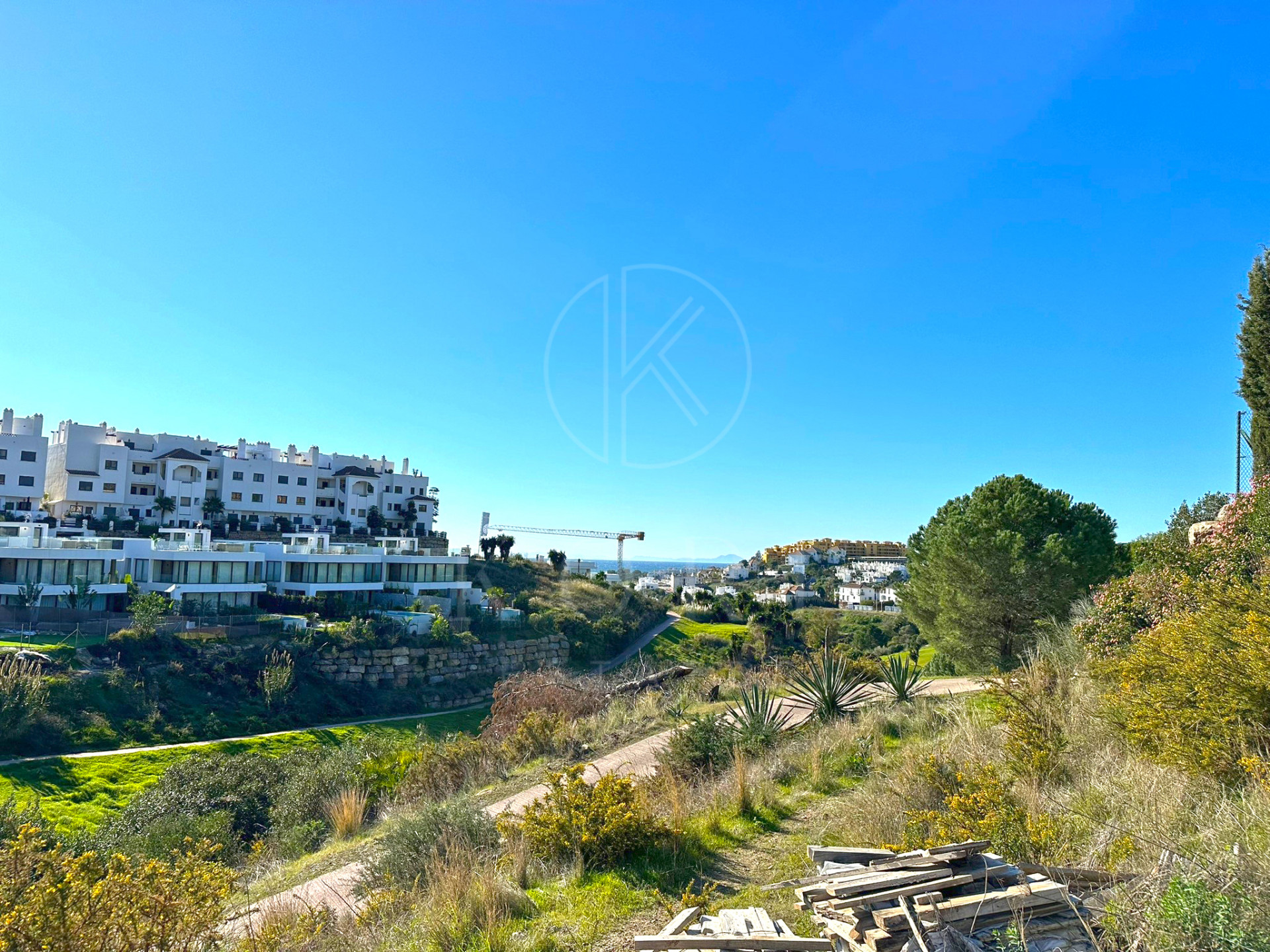 Teren rezidențial cu orientare sudică de vânzare în La Resina Golf, Estepona, cu vedere la mare