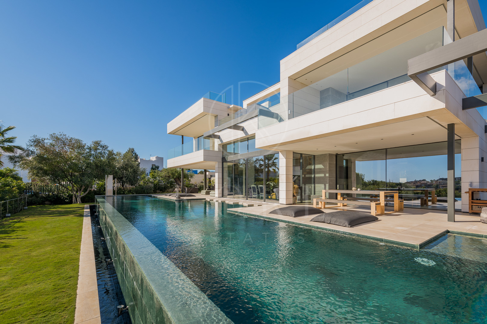 Descoperiți o oportunitate rară de a deține o bijuterie arhitecturală de ultimă generație în enclava prestigioasă Lomas del Virrey, situată de-a lungul exclusivistului Golden Mile din Marbella. Această vilă extraordinară îmbină fără cusur rafinamentul modern cu eleganța atemporală, oferind un stil de viață fără egal, la doar câțiva pași de emblematicul Marbella Club, Puente Romano, plaje de clasă mondială și restaurante gourmet.