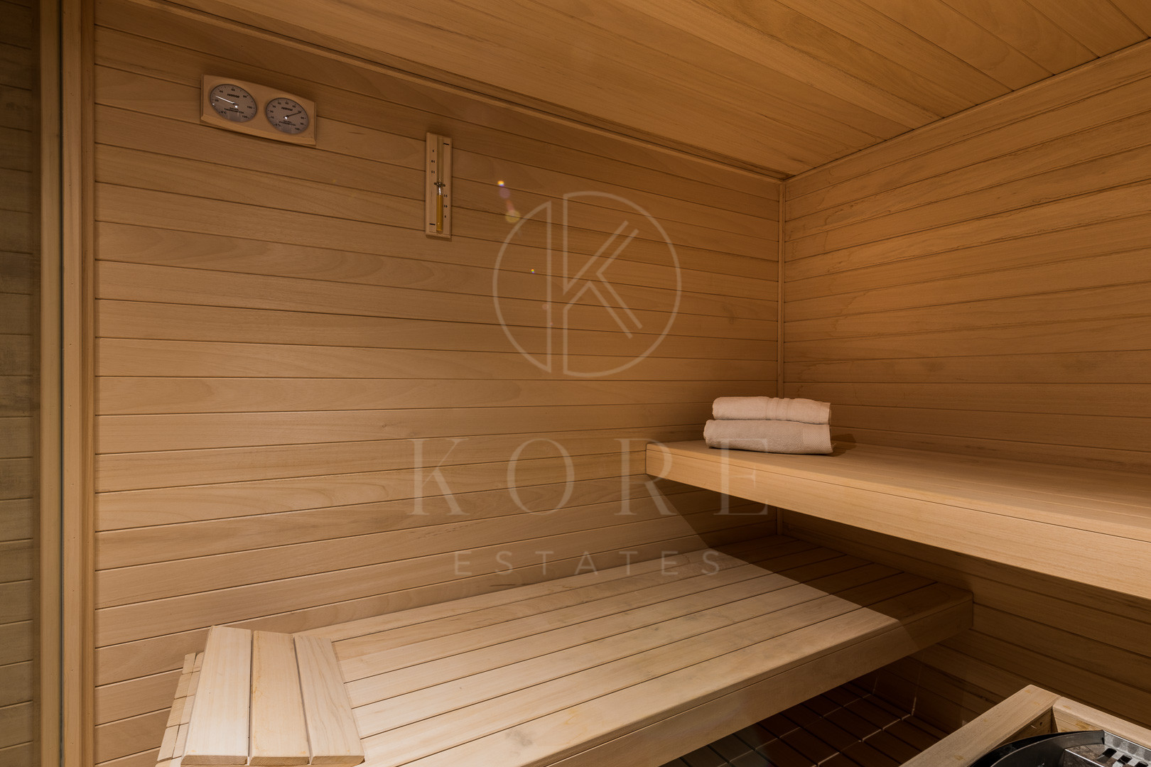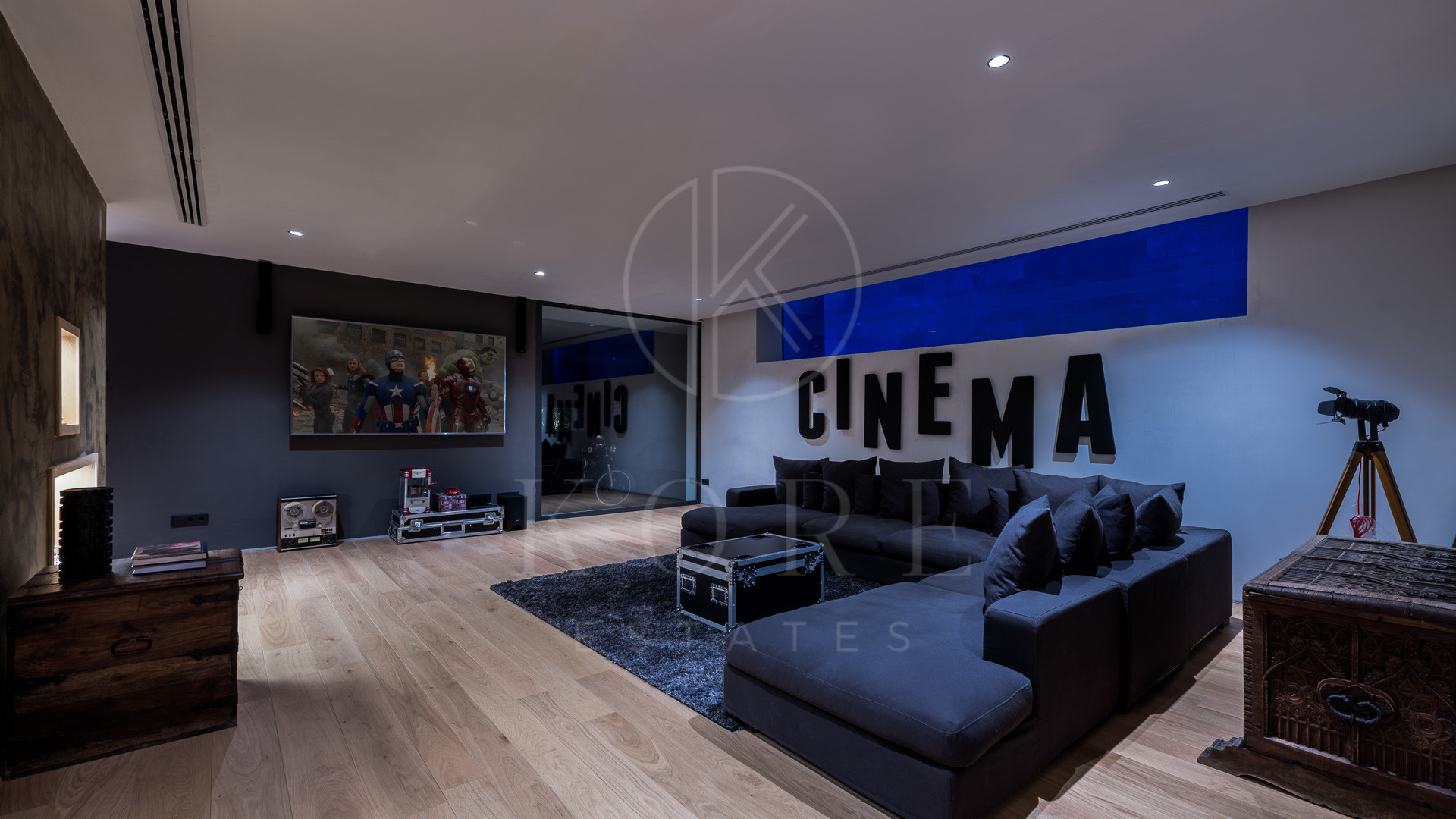 Nivelul inferior al vilei este un sanctuar pentru recreere și wellness, incluzând un cinematograf privat, cramă la comandă, cameră de jocuri, saună, centru fitness spațios și un ring de box dedicat — o caracteristică unică pentru cei care solicită mai mult de la spațiul lor de antrenament.