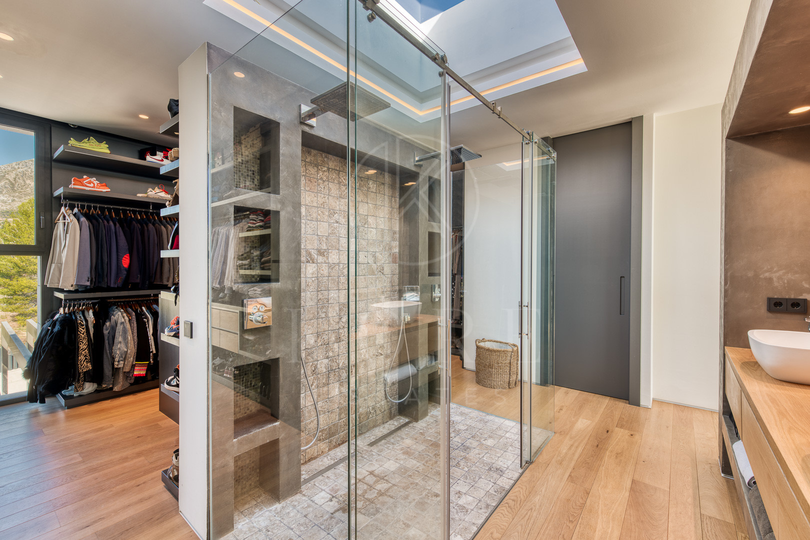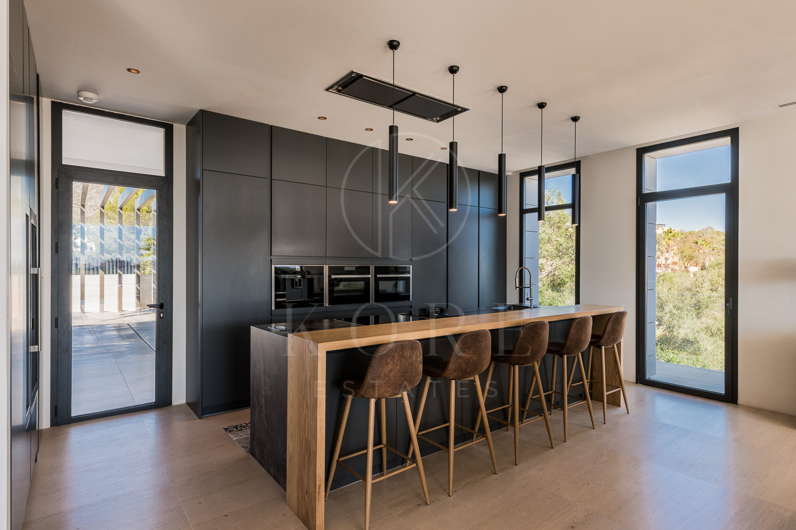 Situată pe un teren însorit, orientat spre sud, cu o suprafață de 1.625 m², această reședință spectaculoasă se întinde pe 943 m², distribuiți pe trei niveluri atent proiectate. Vila emană stil și rafinament, cu interioare spațioase în plan deschis, inundate de lumina naturală mediteraneană prin ferestre înalte de la podea până în tavan.