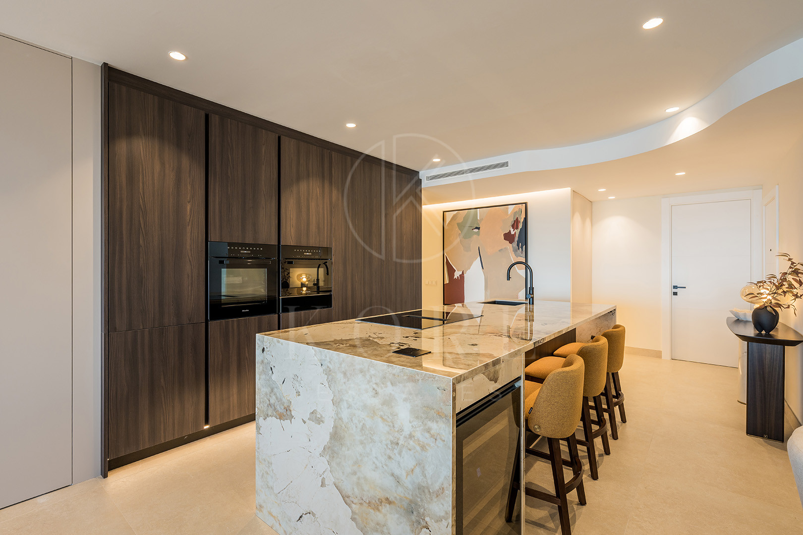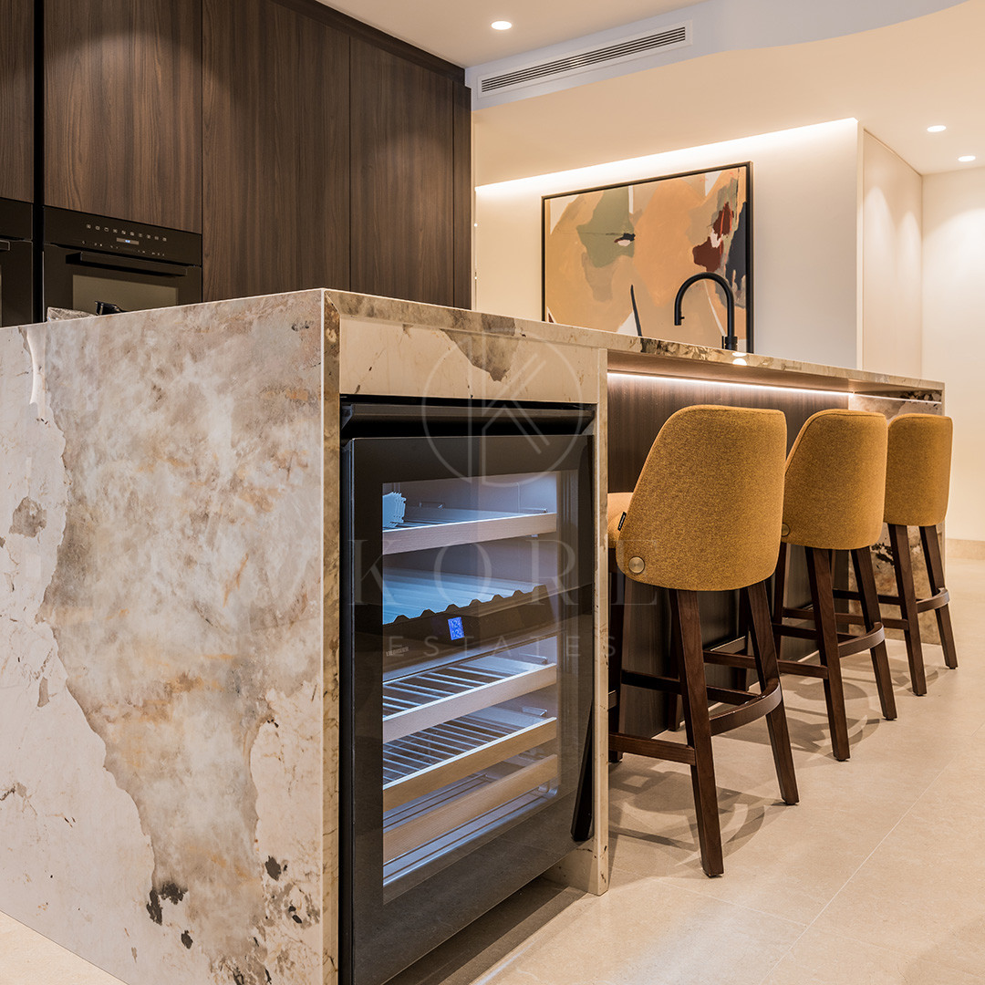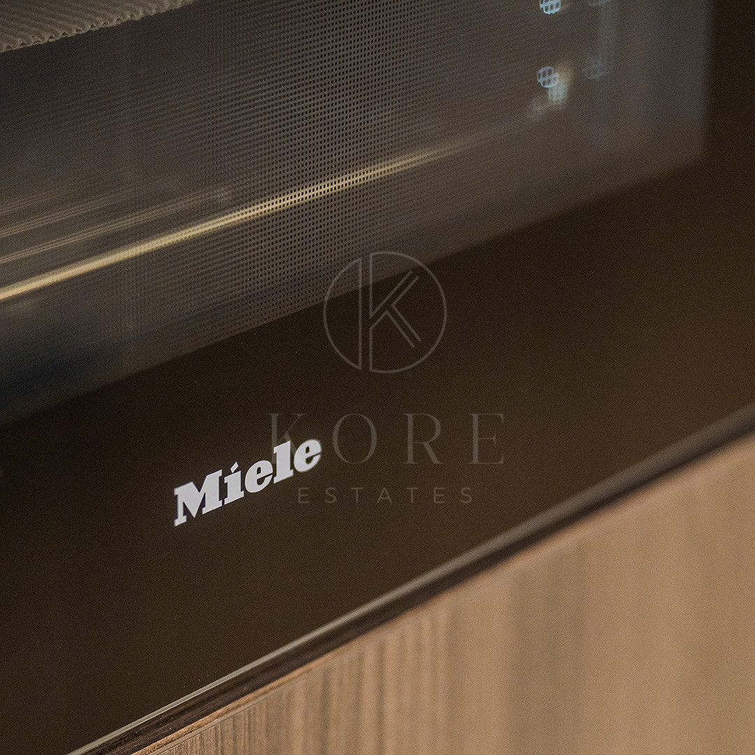Acest apartament luminos de 187 m² se mândrește cu o bucătărie nou-nouță, cu concept deschis, de design, echipată cu aparatură germană premium și dotări luxoase, inclusiv un sistem audio Bang & Olufsen, un șemineu electric și o cadă freestanding.