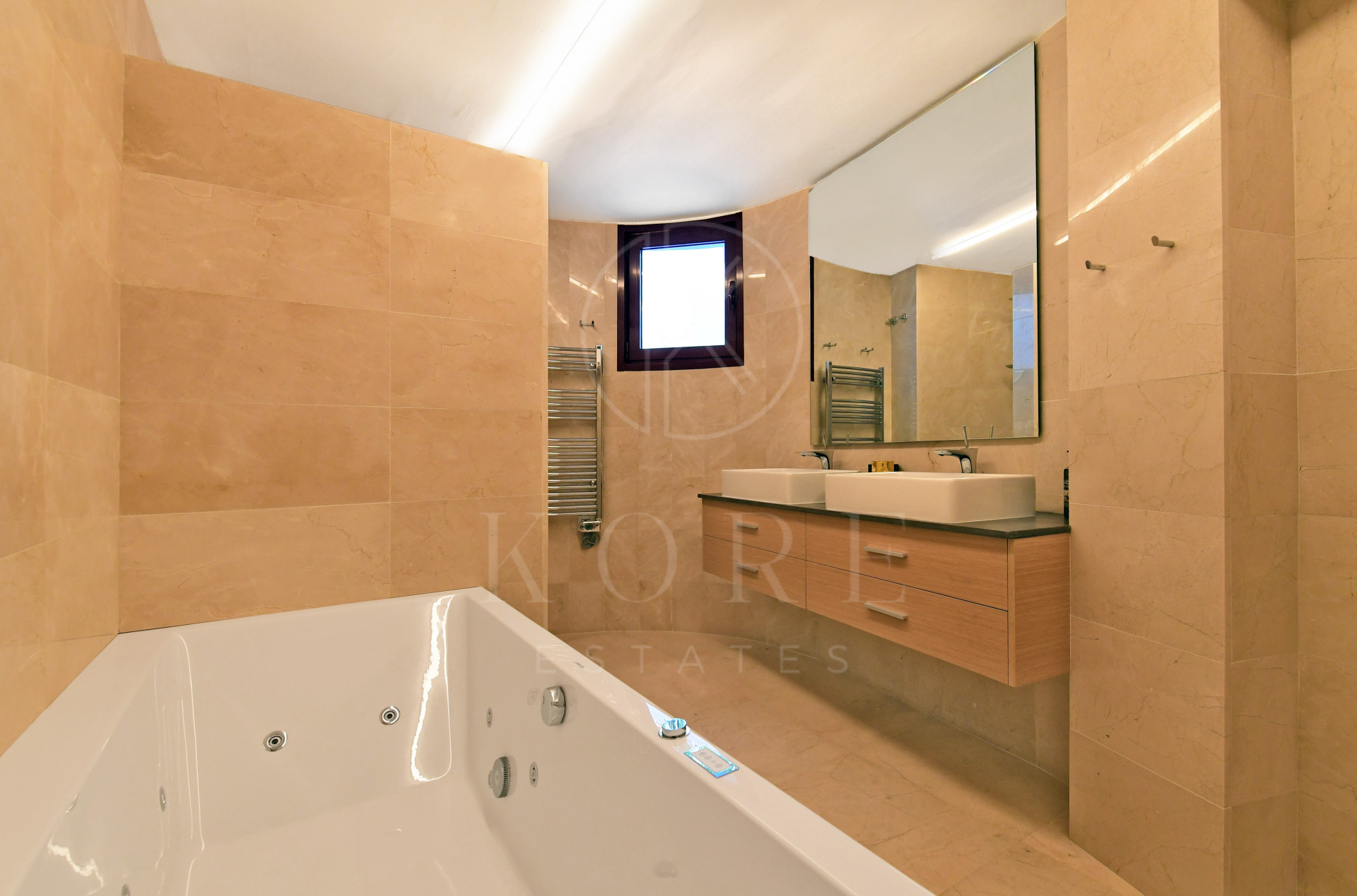 Situată în Nueva Andalucía, această vilă recent renovată este construită la standarde înalte și proiectată de renumitul arhitect Angel Taborda, cunoscut în întreaga lume pentru stilul său avangardist.