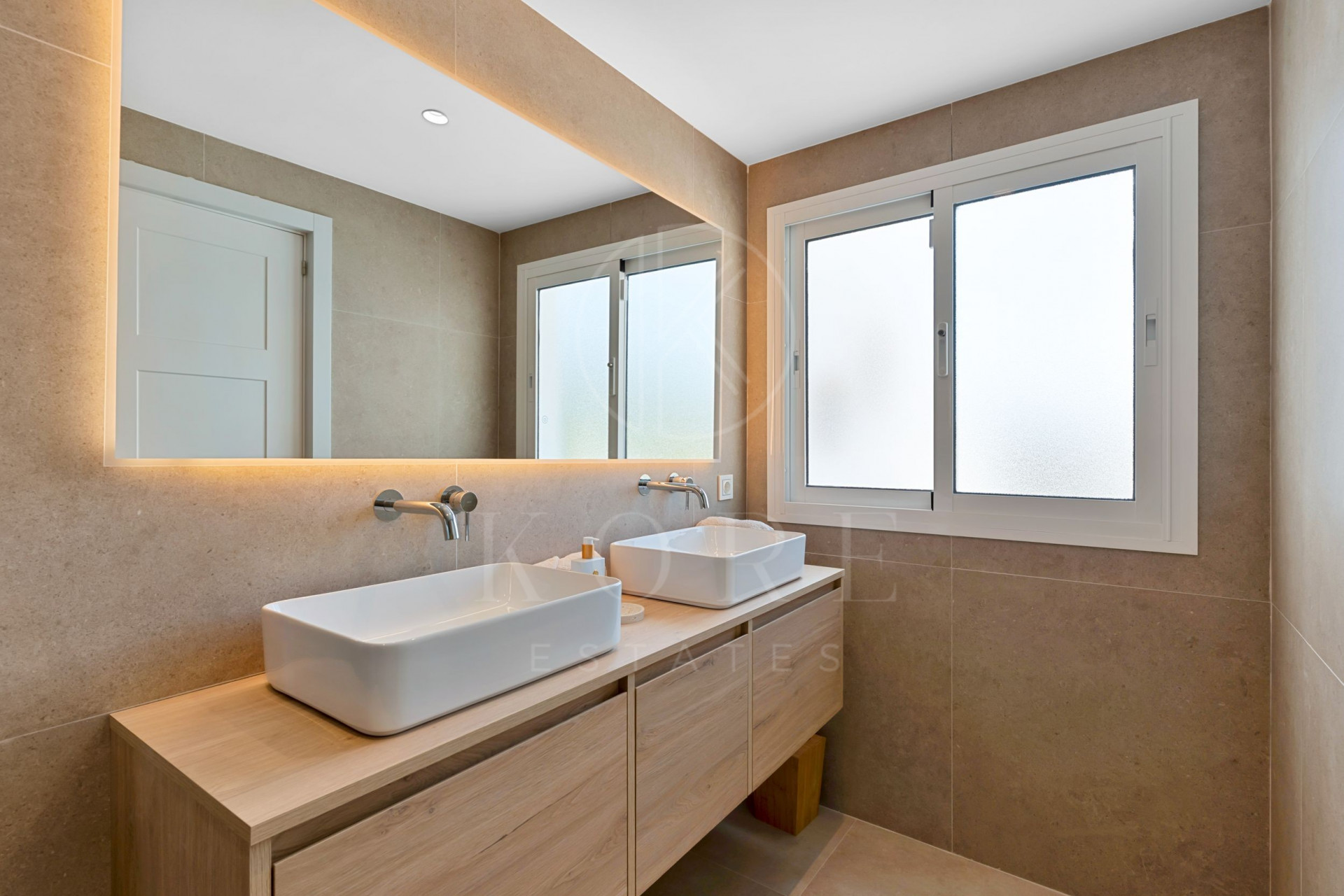 La primul etaj, veți găsi dormitorul matrimonial cu baie proprie și balcon privat. Un al doilea dormitor dispune, de asemenea, de baie și balcon proprii, cu vedere spre curtea interioară și zona piscinei comune.